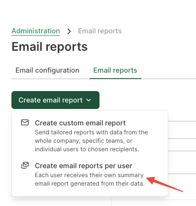 Use this option when you want each user to receive their own summary email report generated from their own data.