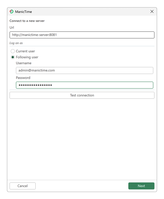 Connecting to server from ManicTime