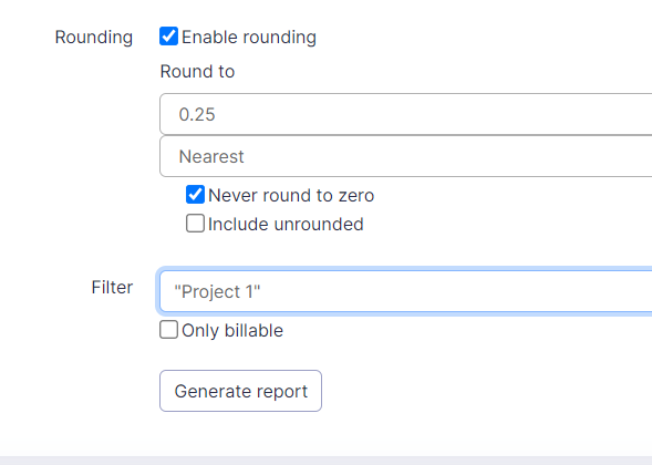 Let's say I want to filter by just Project 1. I can type "Project 1" into filter box and generate report again.