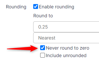 | Tag | Rounding disabled | Round to nearest | Round to nearest with Never round to zero |