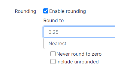 - Nearest - each value in the timesheet will be rounded to the nearest value