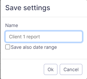 You'll be asked to provide a name. You can also choose to save the date range with the report. If you do, next time you load the report Date range will also be applied.