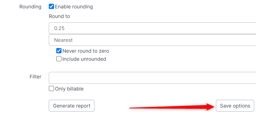 To round values in the timesheet, check Enable rounding. There are two settings, the value you want to round to and how ManicTime performs the rounding: